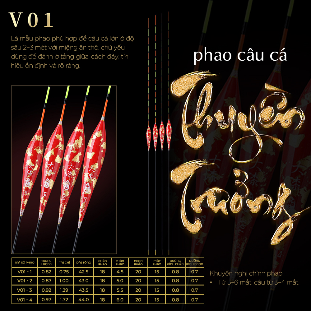 • Dễ tùy chỉnh: Chỉnh phao theo vạch chia mắt cực chuẩn (từ 0–19 mắt), đáp ứng mọi sở thích về độ nổi và độ sâu.