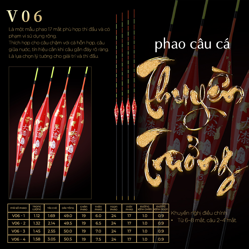 • Dễ tùy chỉnh: Chỉnh phao theo vạch chia mắt cực chuẩn (từ 0–19 mắt), đáp ứng mọi sở thích về độ nổi và độ sâu.